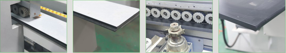 ●本机适用于抗倍特板、卫生间隔断、实验室工作台等板材(包括贴皮材料)的直线铣边、倒角铣圆弧边、开槽砂光、打油等功能,生产效率高。