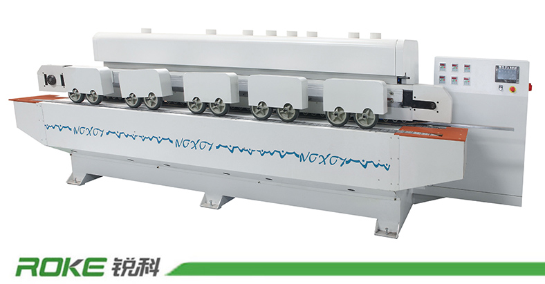 ●本机触摸屏,加PLC微电脑控制,操作简单,砂光组件有自动进退和自动补偿功能。可防止工件砂头、砂尾及砂轮消耗后的自动进给减少繁琐的人工补偿。
